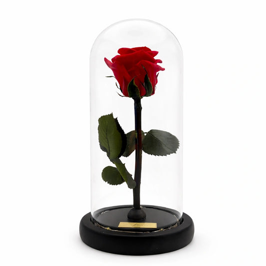 LIMITED | M-es fejméretű szálas örökrózsa üvegbúrában, LED világítással