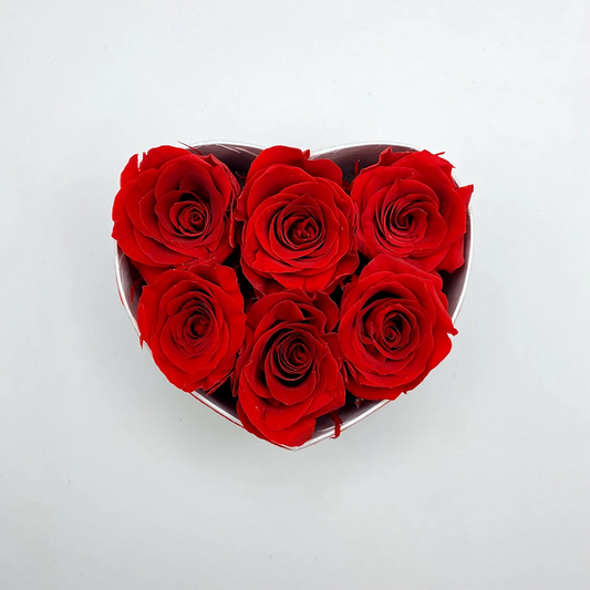 6 mini örökrózsa szív alakú kalapdobozban