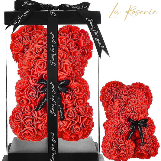 Rózsa maci díszdobozban - 40 cm