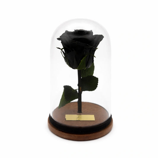 S-es szálas fekete örökrózsa üvegbúrában, LED világítással