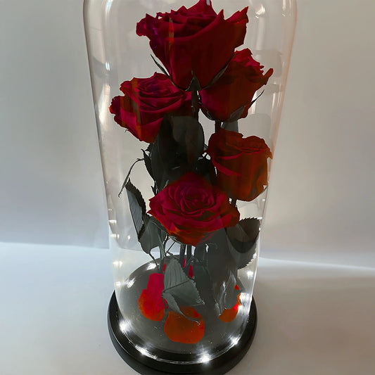 Öt óriás örökrózsa üvegbúrában, LED világítással