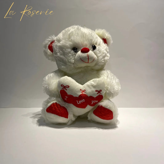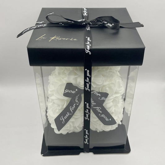 Rózsa maci díszdobozban - 20 cm, fehér