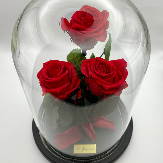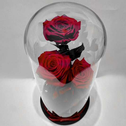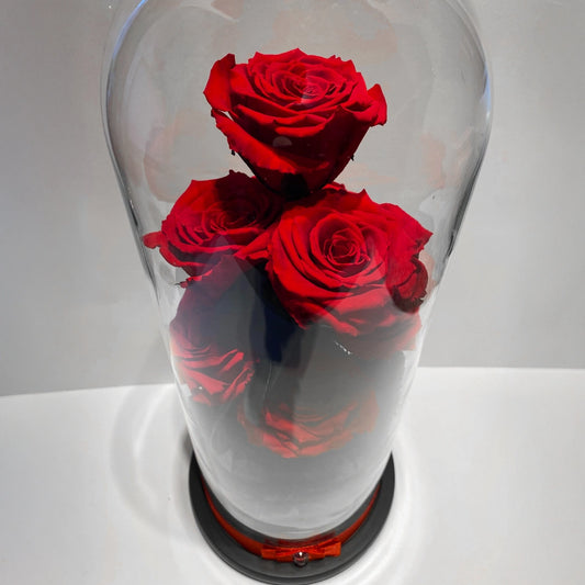 Három óriás örökrózsa üvegbúrában, LED világítással