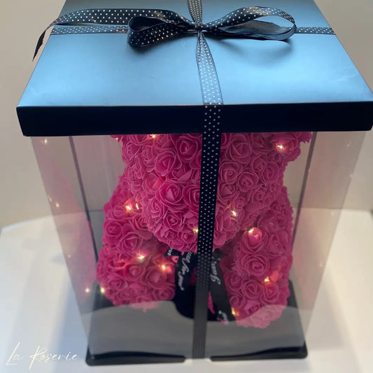 Rózsa maci LED világítással, díszdobozban - 40 cm