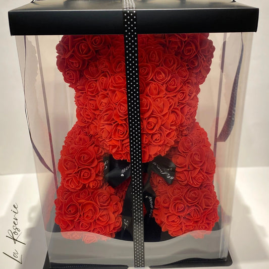 Rózsa maci díszdobozban - 40 cm