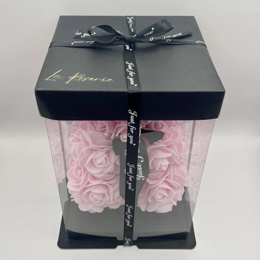 Rózsa maci díszdobozban - 25 cm