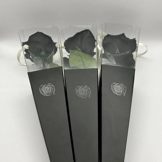 Szálas fekete örökrózsa díszcsomagolásban