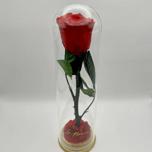 L-es fejméretű szálas örökrózsa üvegbúrában, LED világítással
