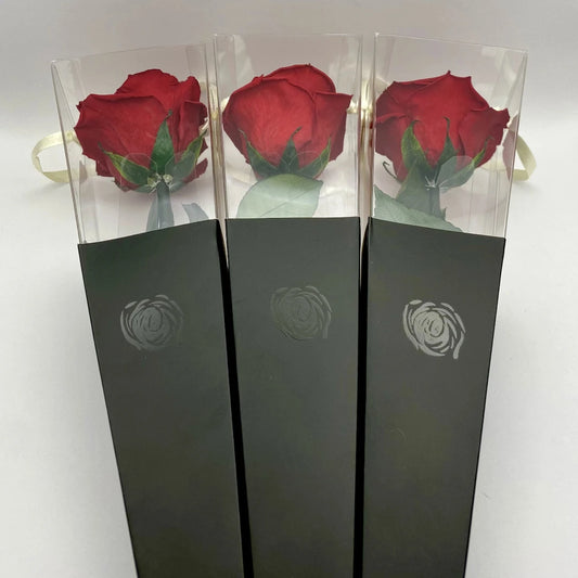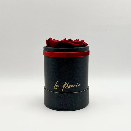 Vörös örökrózsa fekete kalapdobozban