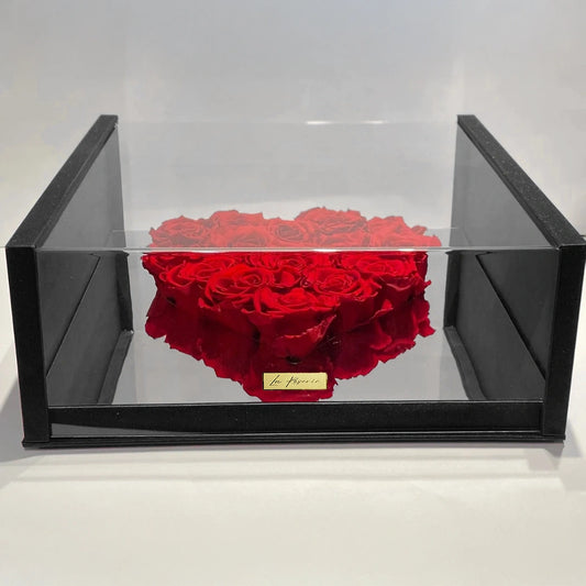 Örökrózsák szív alakú akril dobozban, tükörrel