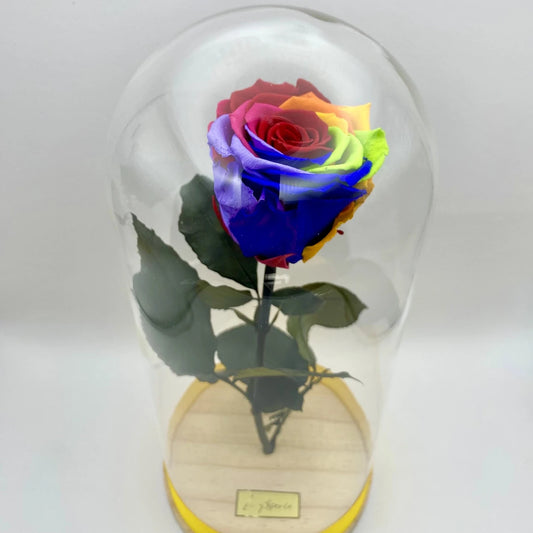 XL-es fejméretű szálas szivárvány örökrózsa üvegbúrában